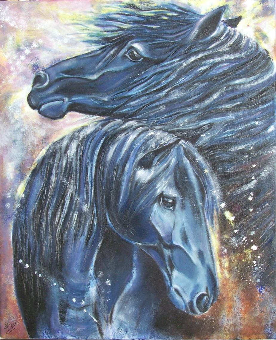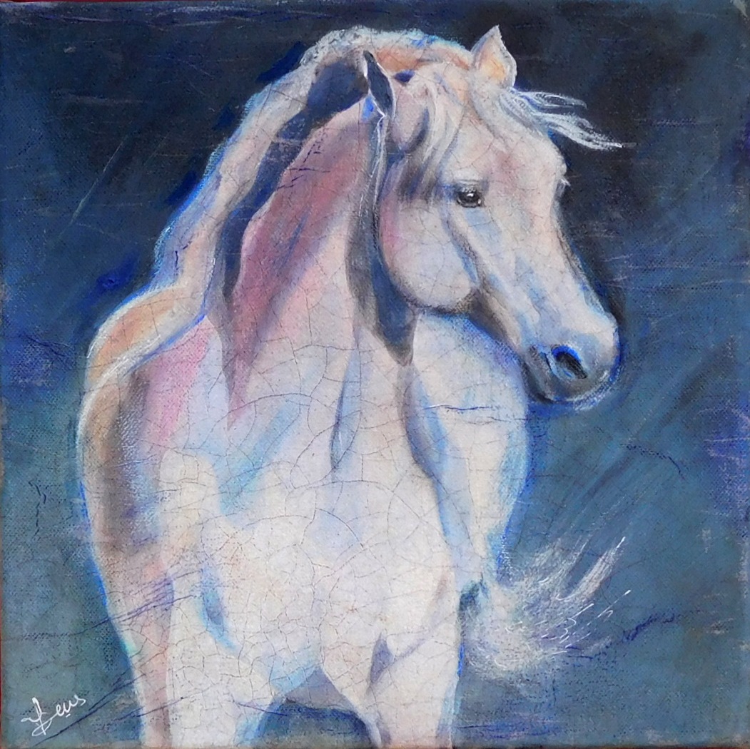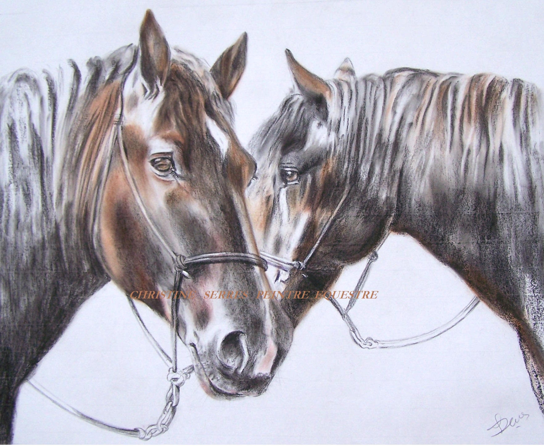Peindre les chevaux, parfois d’autres animaux, mais eux surtout, est toujours un moment de grande concentration, mais de détente aussi. Le croquis, puis les détails qui naissent sous le crayon, me font pénétrer dans leur univers. De là on s’installe, moment privilégié pour étudier la lumière qui s’accroche à un muscle, l’éclat du soleil sur une paupière…